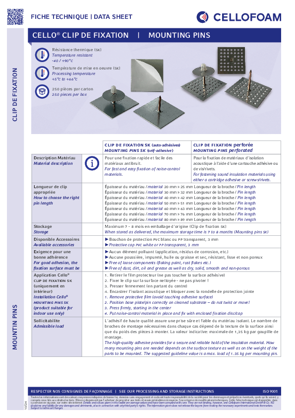 Clip de fixation, autocollant, pour la mise en place rapide et simple de l'isolant acoustique.